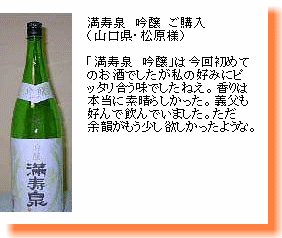 甘く漂うフルーティーな香味は飲む方を魅了します。女性にも人気の隠れた銘酒。 |