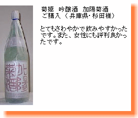 | あの有名なグルメ漫画、「美味しんぼ」でも紹介された蔵元 その銘酒の頂上に位置する酒「菊理媛」と「黒吟」。1年を平気で待つお客様がいらっしゃる程の超希少酒 |