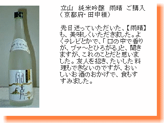 コストパフォーマンス高し。 「純米大吟 米の芯」は、まさにジャパニーズライスワイン。シルクを連想させる柔らかな口当たりを常温で是非。 |