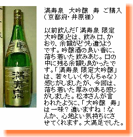 能登杜氏四天王の技術を継承。 満寿泉のお酒は、能登杜氏四天王の一人、「三盃幸一」氏の技術が受け継がれています。 |