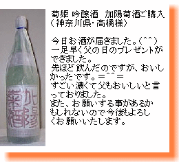 甘く漂うフルーティーな香味は飲む方を魅了します。女性にも人気の隠れた銘酒。 |
